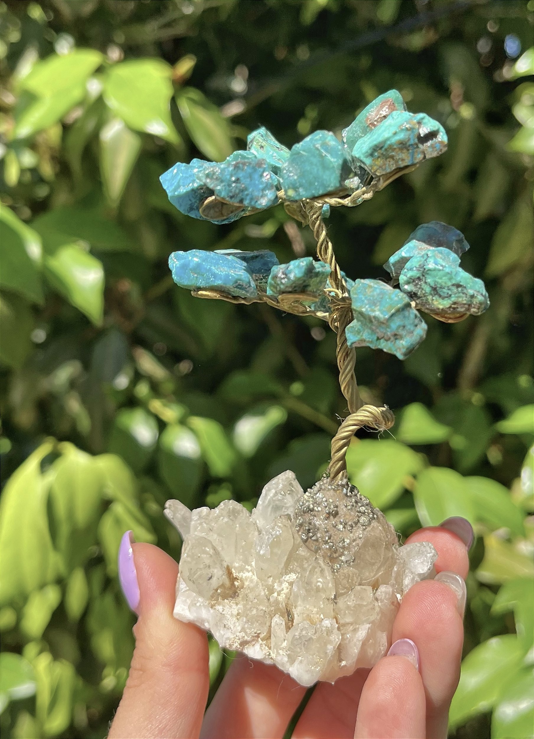 Nesta foi usado como Base o Quartzo Cristal, para purificar as Energias do Ambiente e amplificar a Energia dos demais Cristais. Enquanto nos galhos, foram usados Crisocola, Cristal que ajuda a limpar sentimentos de culpa, tensão e medo.