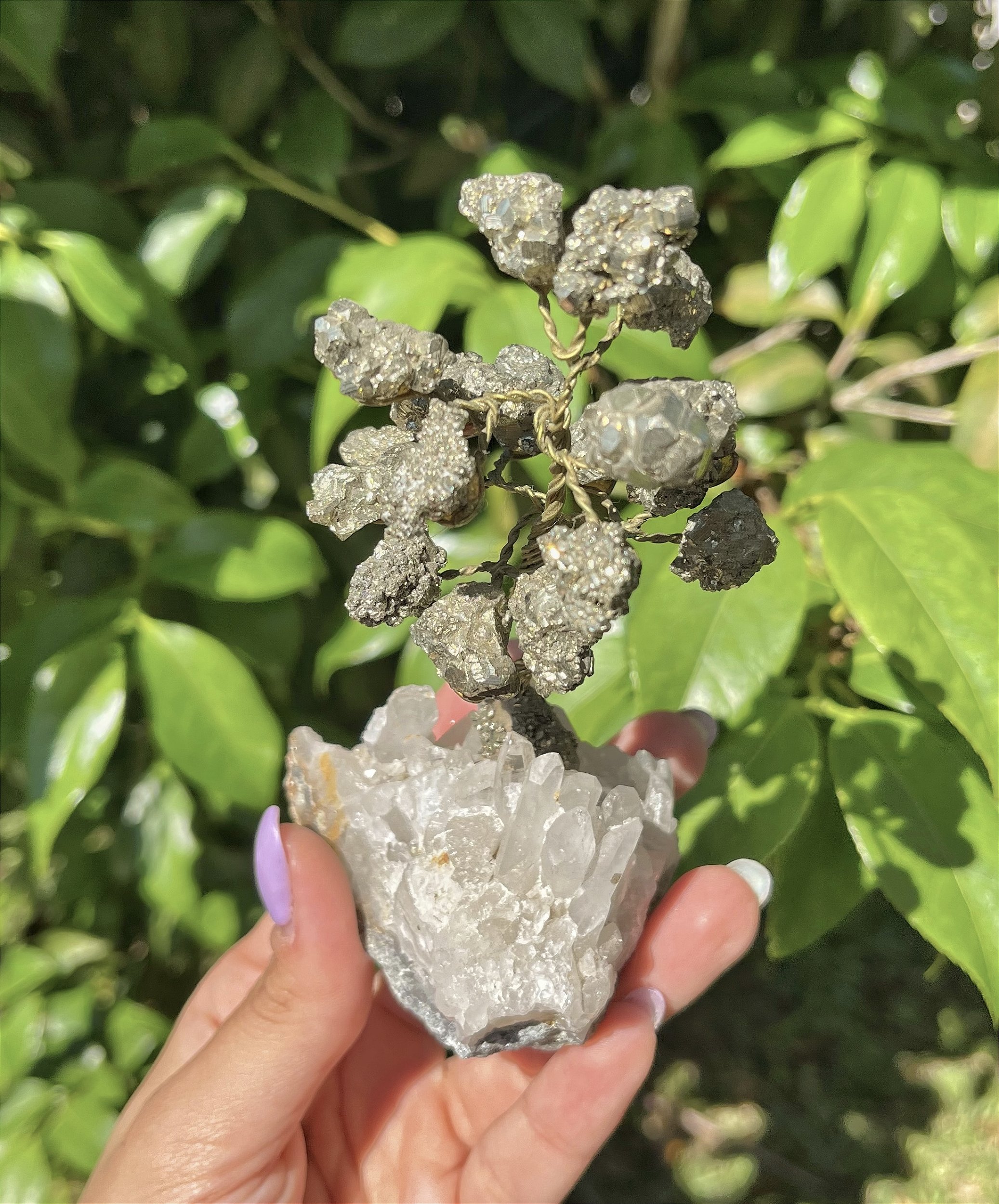 Nesta foi usado como Base o Quartzo Cristal, para purificar as Energias do Ambiente e amplificar a Energia dos demais Cristais. Enquanto nos galhos, foram usadas Pirita, Cristal da Prosperidade e Abertura de Caminhos.