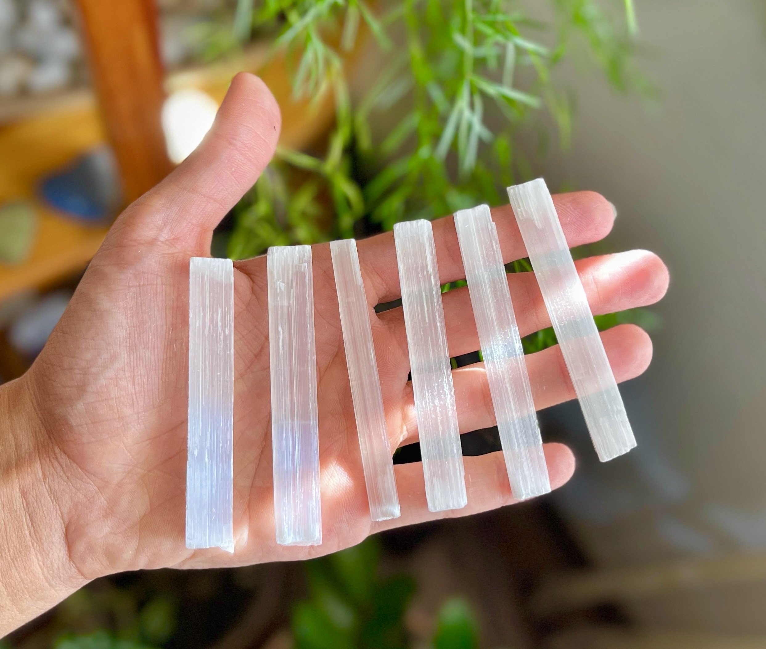 Pra limpar a nossa energia: Nos dias que vc se sentir carregado, passe o bastão ao seu redor mentalizando limpeza, começando da cabeça pra baixo … se sente dores de cabeça ou outra dor: deixe a selenita na região da dor por alguns instantes e ela ajudará a puxar a dor!