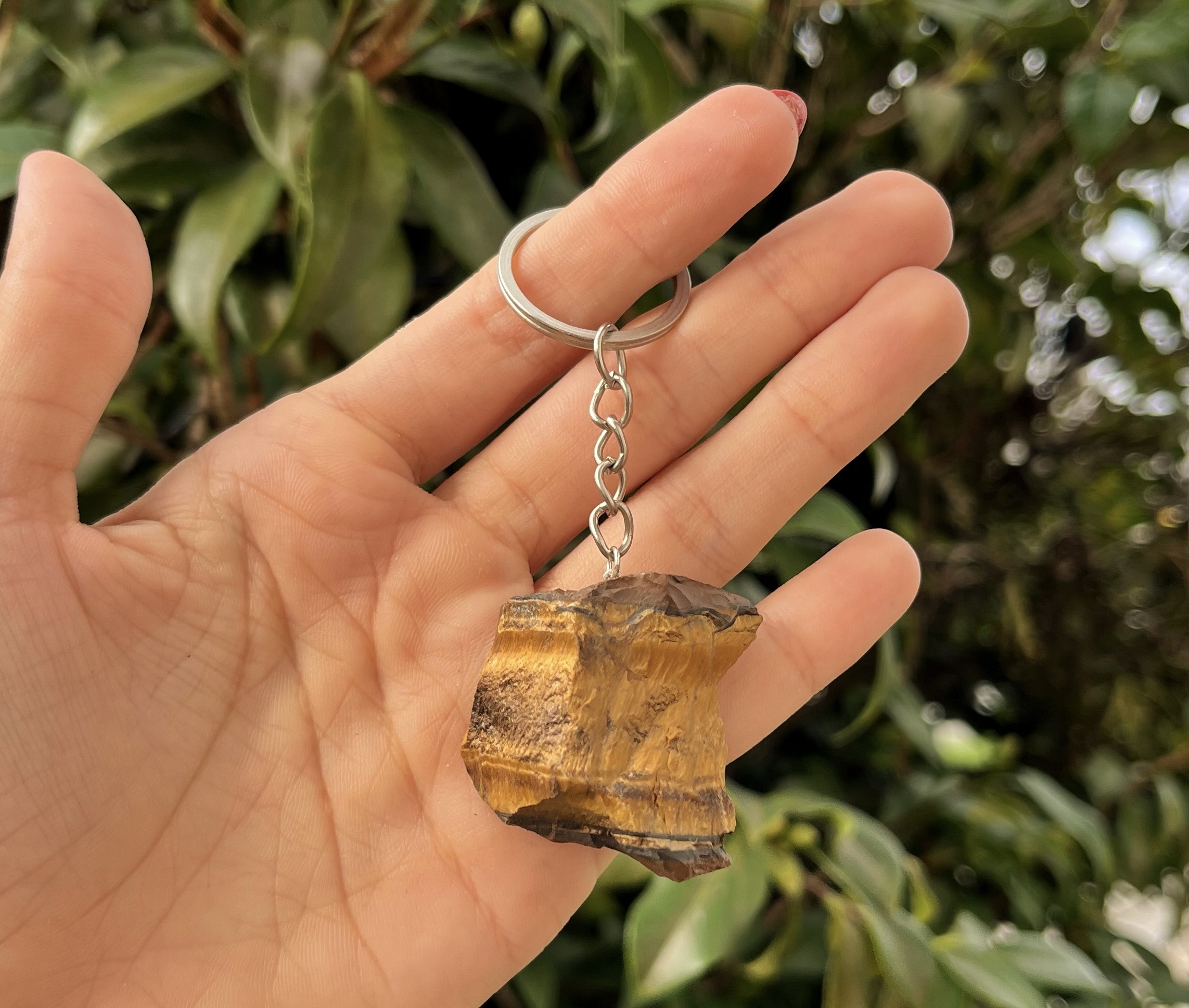 Chaveiro de Proteção feito com Cristal Natural de Olho de Tigre na opção bruta.