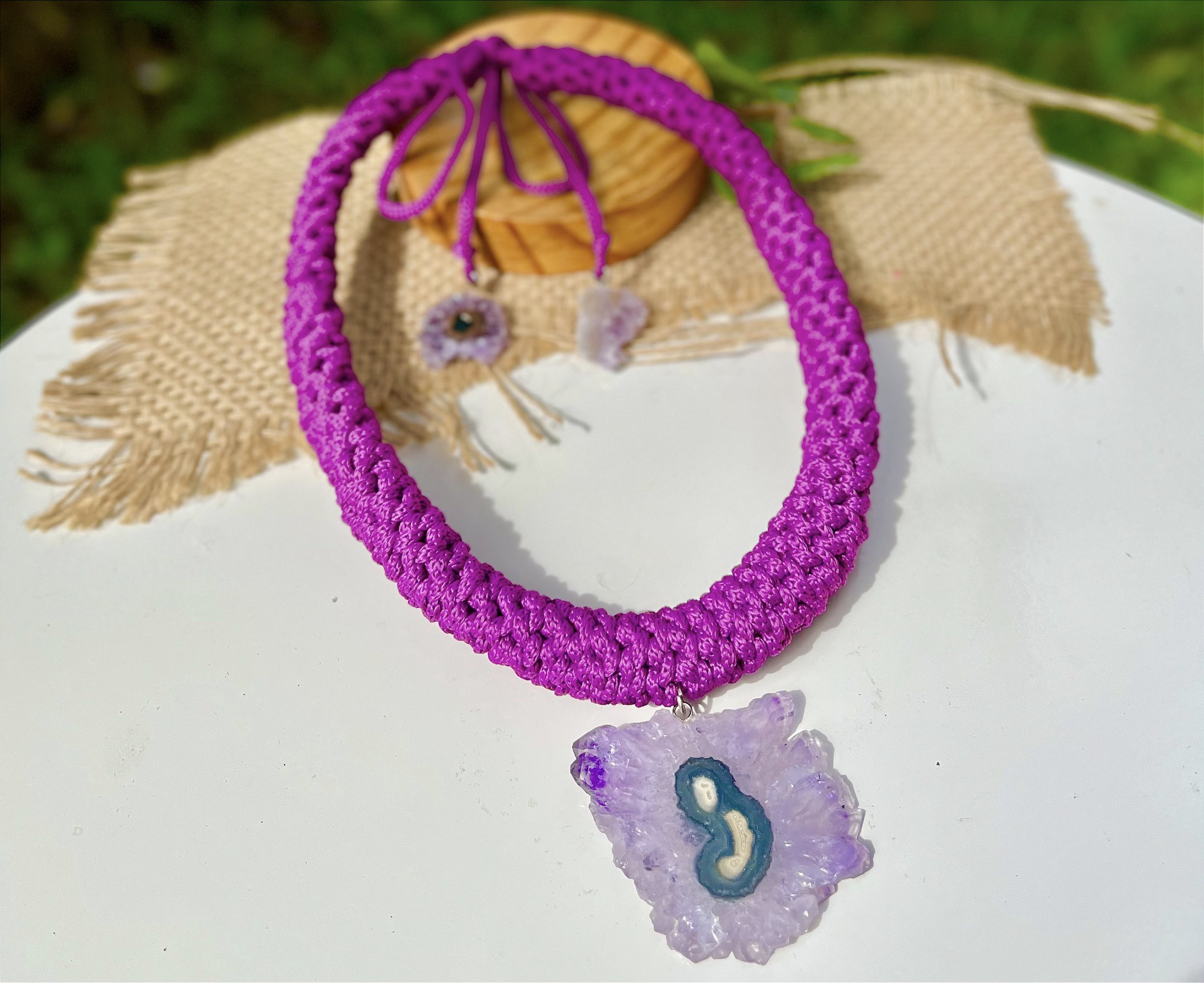 Colar Adrielli na cor roxa com Drusas de Ametista. Uma peça feita de forma manual com todo carinho e energia única!