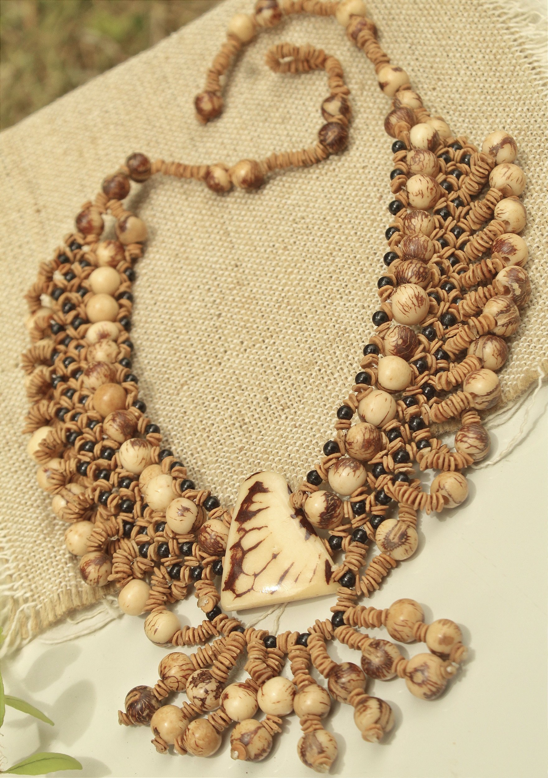 Colar cuidadosamente confeccionado a mão pelos povos originários da região do Monte Roraima, utilizando sementes naturais de Açaí e técnicas tradicionais passadas de geração em geração.