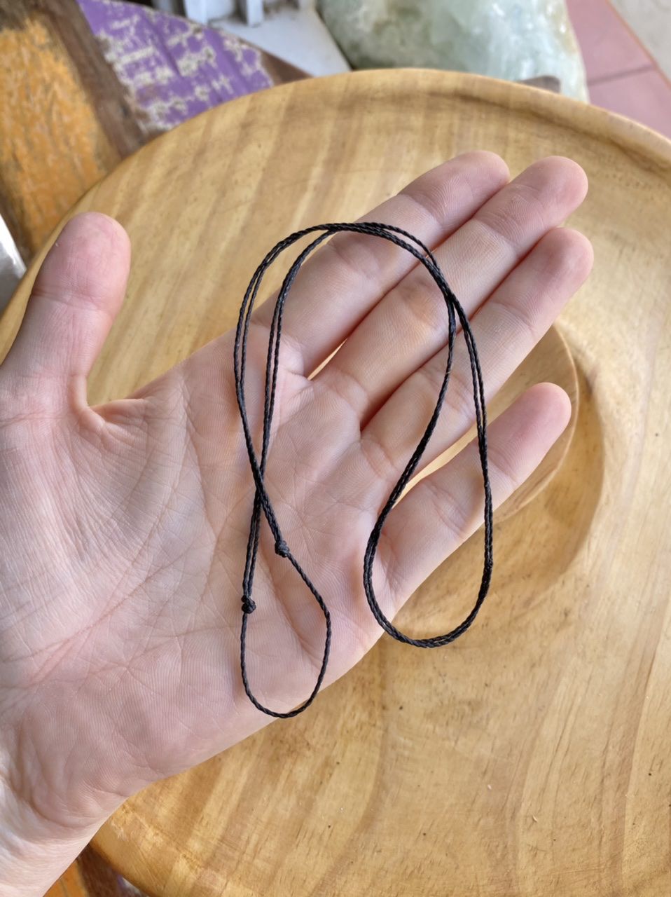 Cordão avulso com ajuste de tamanho, feito com fio encerado, super resistente e confortável. Pode molhar inclusive que ele não estraga.