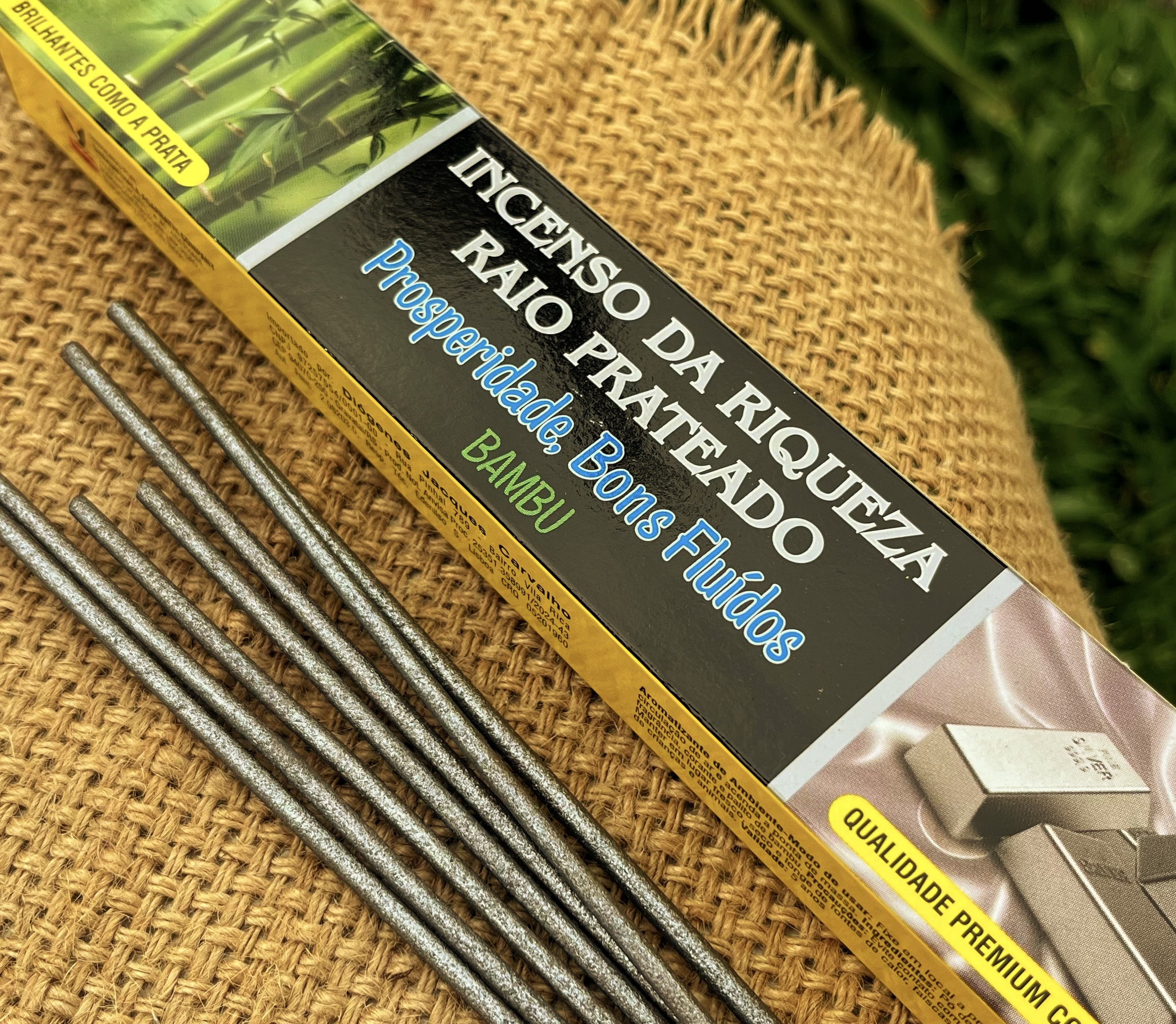 O Incenso da Riqueza com Raio Prateado de Bambu irradia uma fragrância marcante e energizante, que eleva a vibração do ambiente.