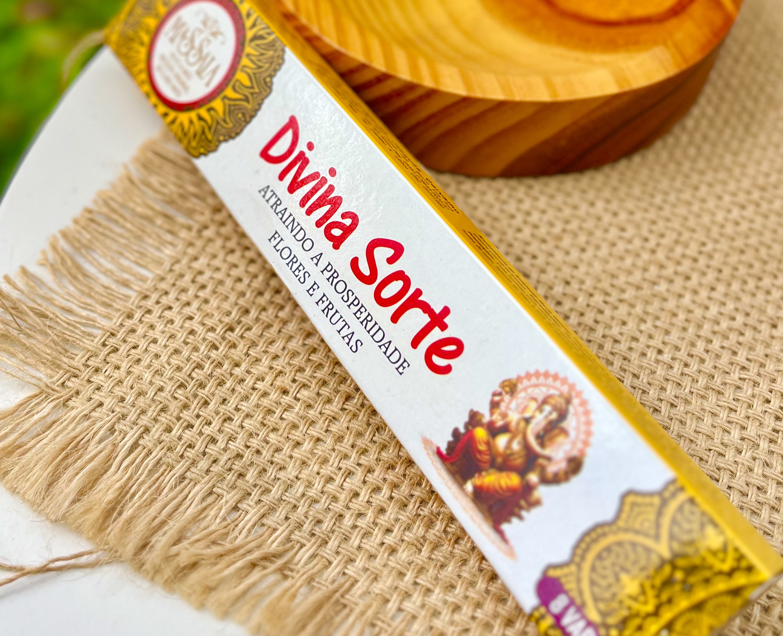 Incenso Massala para elevar sua vibração e trazer a Divina Sorte com a imagem de Ganesha, que é um dos Deuses mais queridos do Oriente por conceder a Sorte, Prosperidade e Sabedoria. Sua fragrância é extremamente energizante, com aroma de flores e frutas.