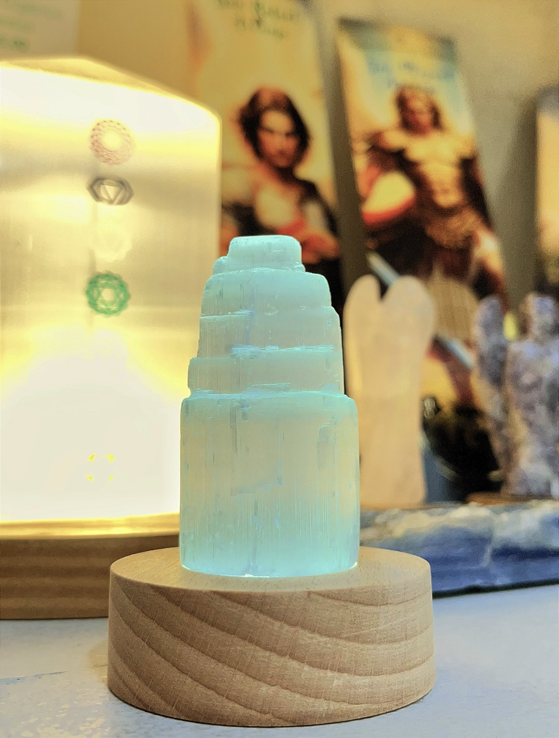 A Luminária Led Colorida é ideal para destacar seus Cristais com um efeito vibrante e encantador. Com base em madeira e iluminação em cores variadas, ela cria uma atmosfera mágica. Fica linda colocada em altares, prateleiras e espaços especiais que merecem mais cor, luz e energia!