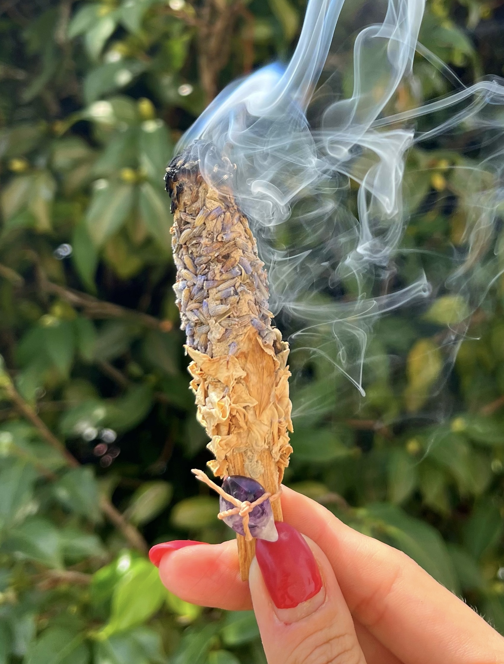 Palo Santo Imantado feito artesanalmente pela Su aqui na Arte Natural, com Breu Branco, Lavanda, Rosa Branca e Óleo essencial de Palo Santo, para amor próprio, calma e alinhamento energético! Acompanha um Cristal de Ametista, que conecta com nossa intuição e acalma pensamentos.