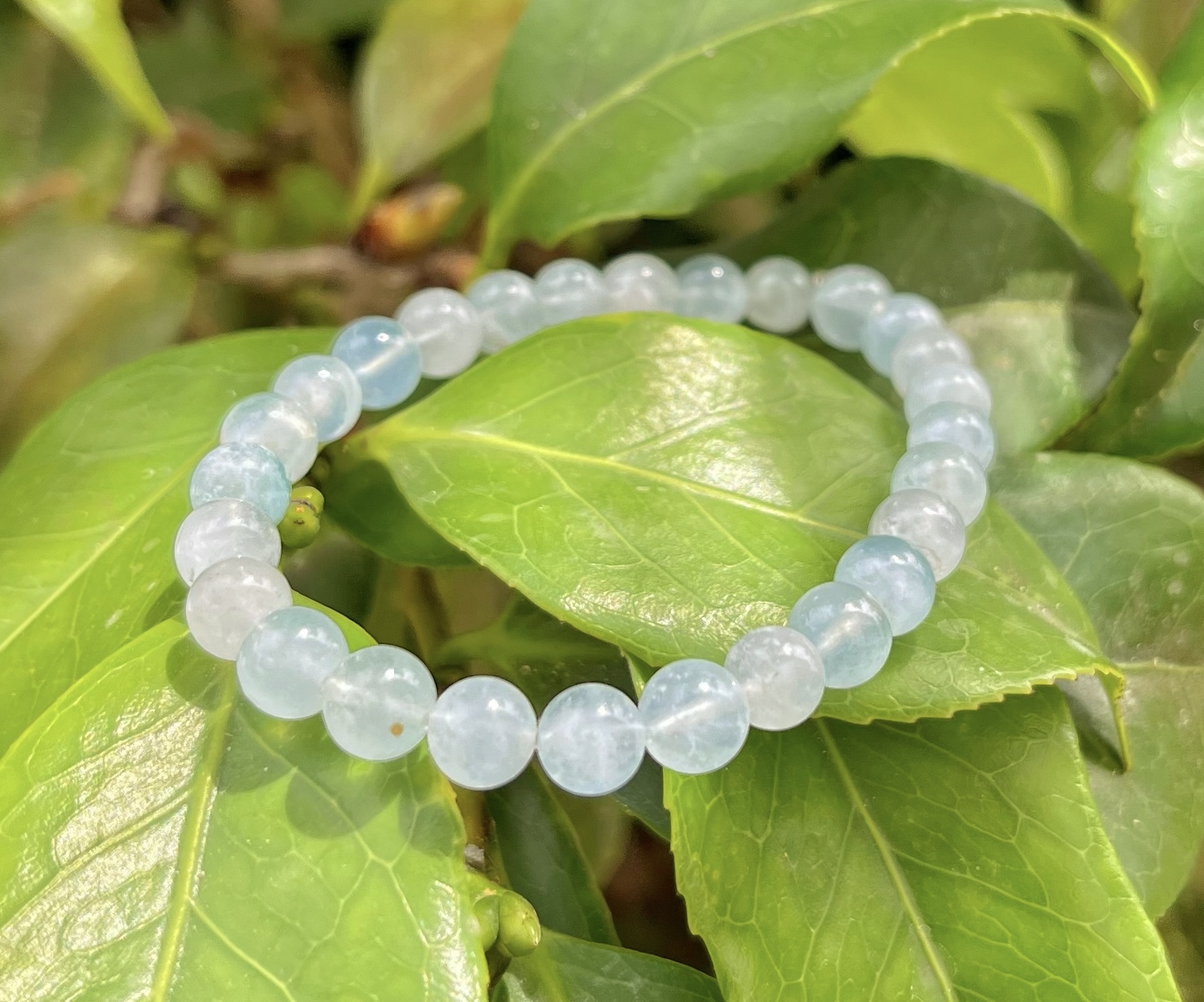 Pulseira feita com Cristais Naturais de Água Marinha. Com elástico super reforçado e confortável. Esferas de 6mm.
