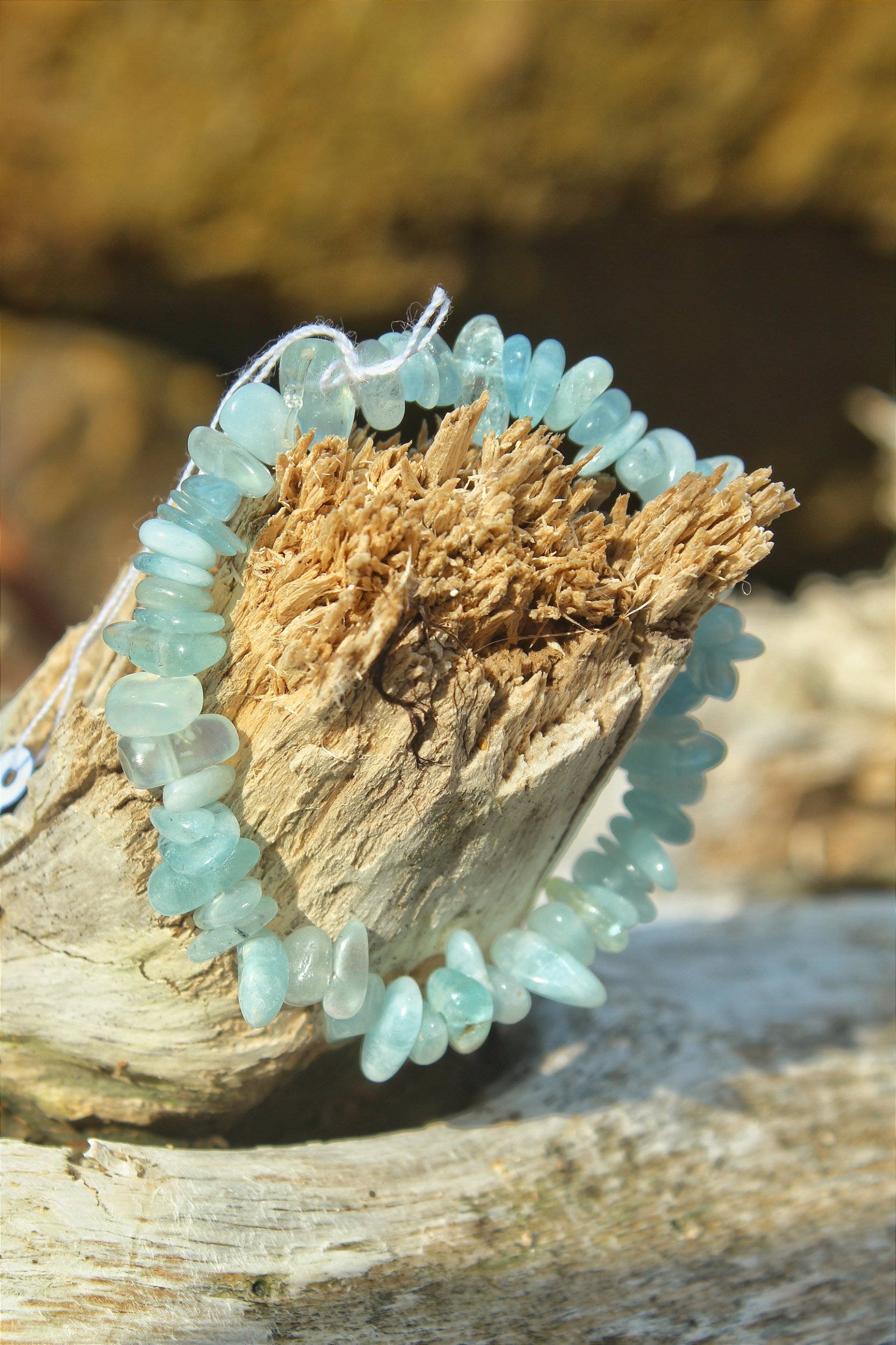 Pulseira de Elástico com Cristais Naturais de Água Marinha.
