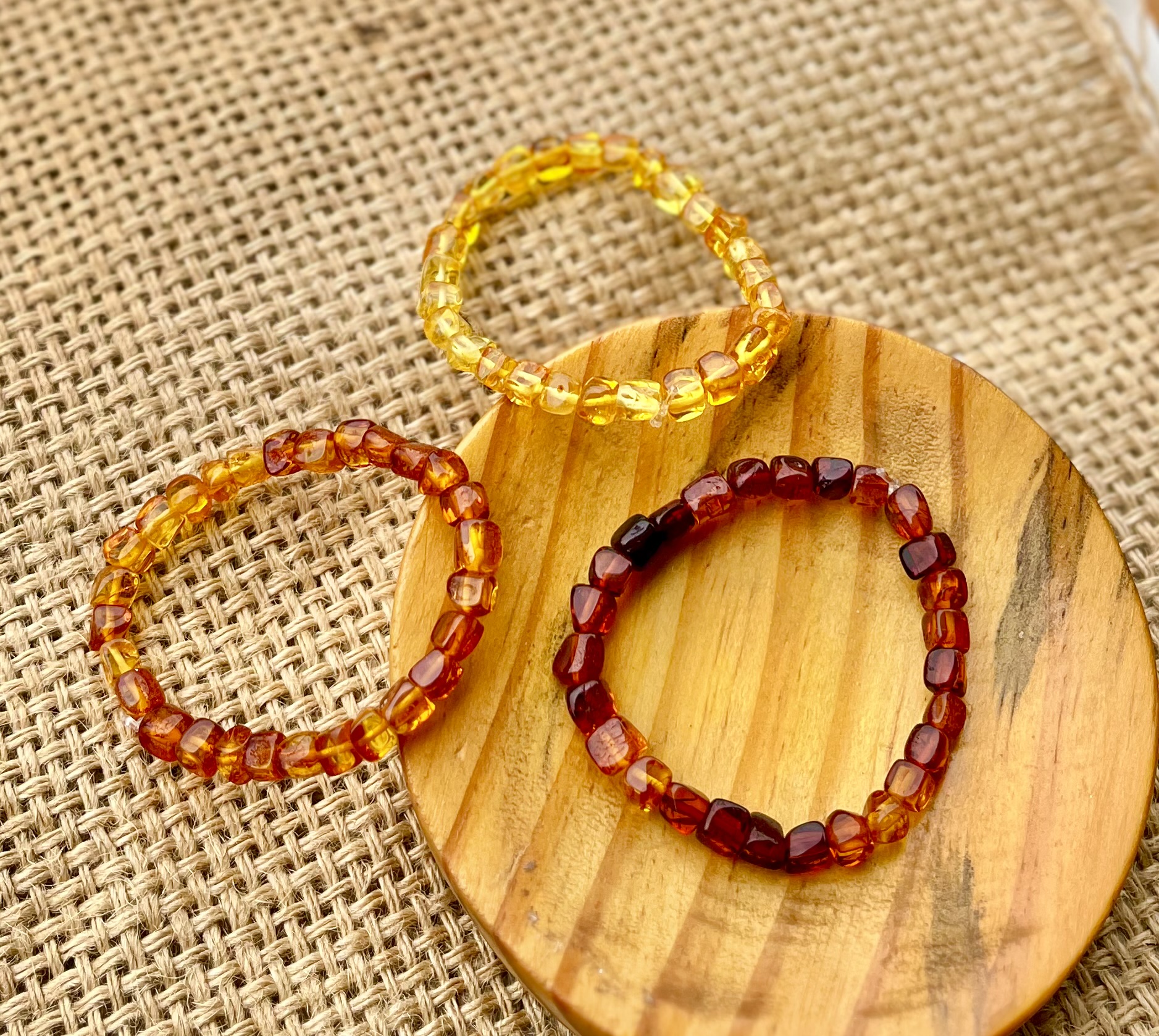 Pulseira de elástico com Âmbar do Báltico infantil, esferas tem em média 5m a 6mm. Elástico super resistente. Novidade exclusiva da Trip da Su.