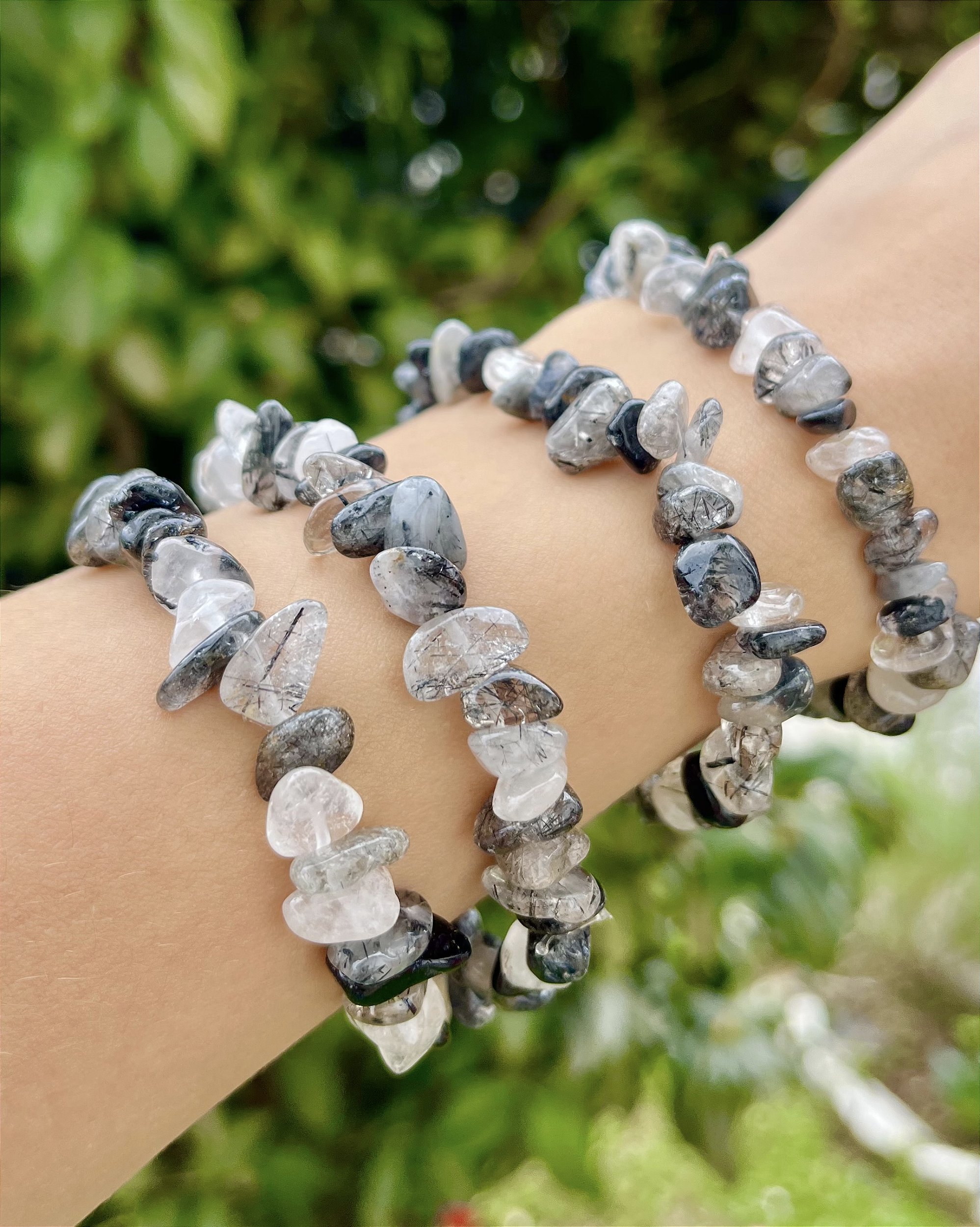 Pulseira com Cristais Naturais de Turmalina Negra + Quartzo Cristal, podem ter uma pequena variação de tamanho e cores como mostrado nas fotos. Com elástico super resistente! Novidade Exclusiva da Trip da Su.
