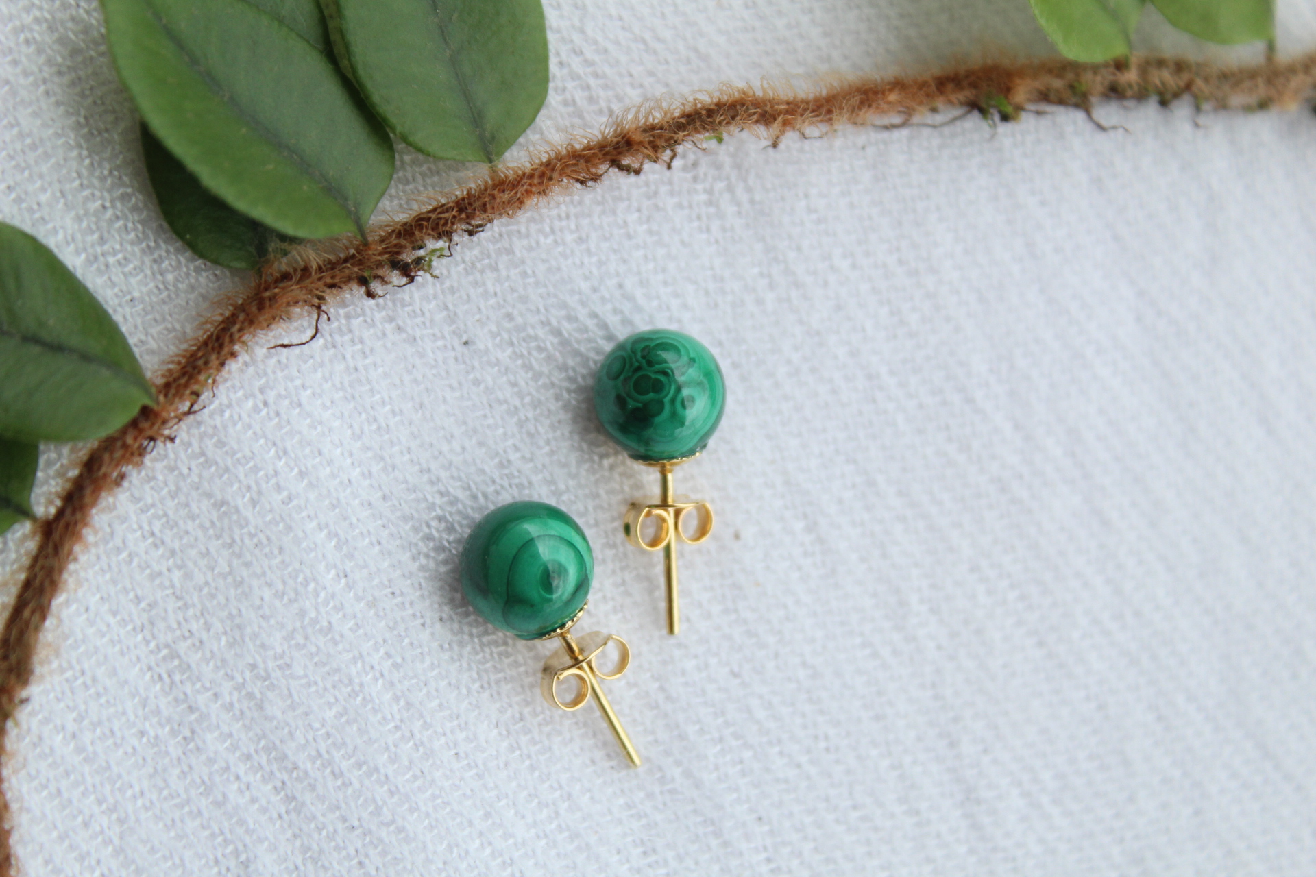 Brinco super delicado feito com Malaquita, Cristal que dissipa energias negativas.