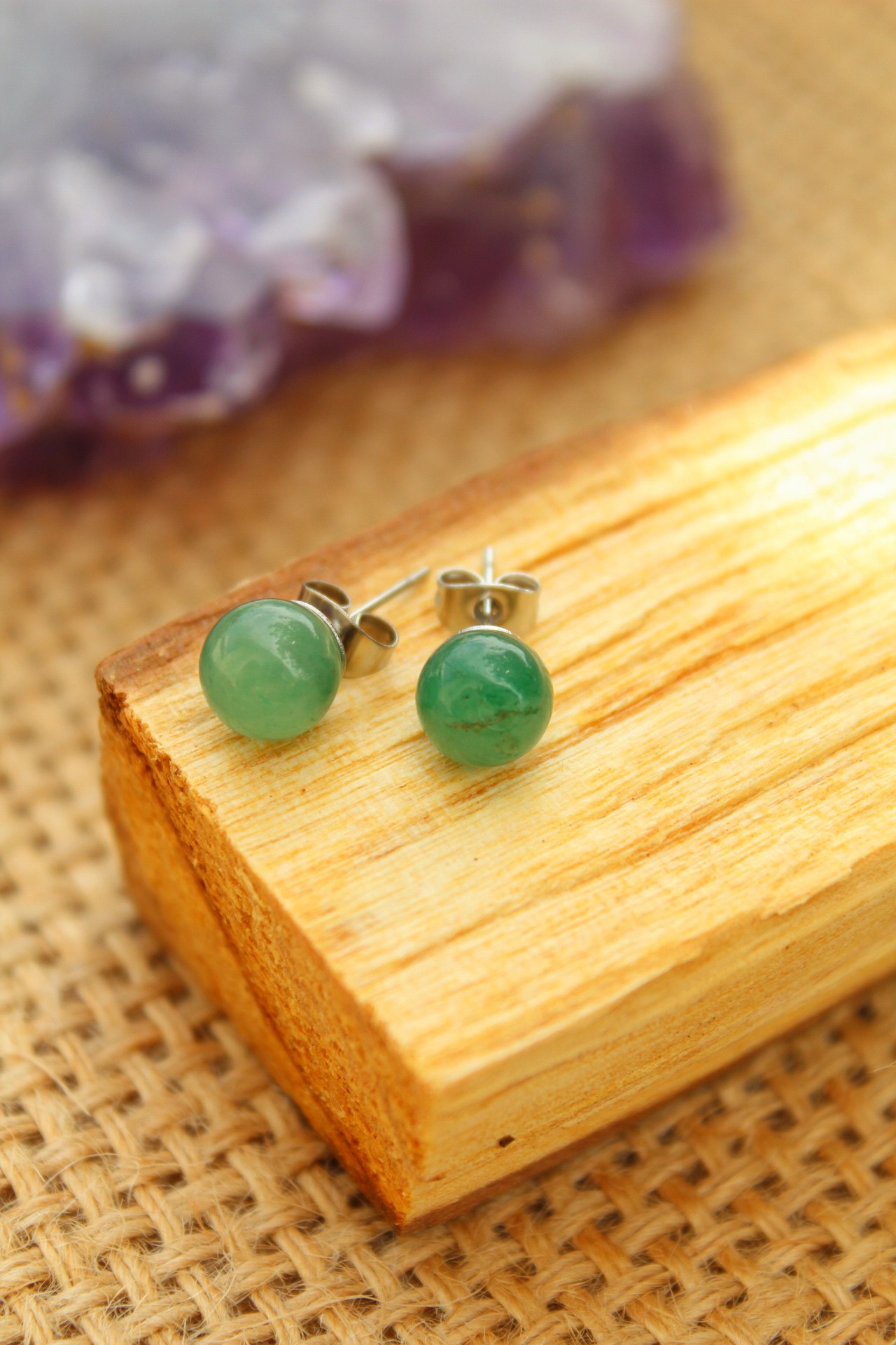 Brinco super deixado feito com Cristal natural de Quartzo Verde, traz Cura, Saúde e Proteção.