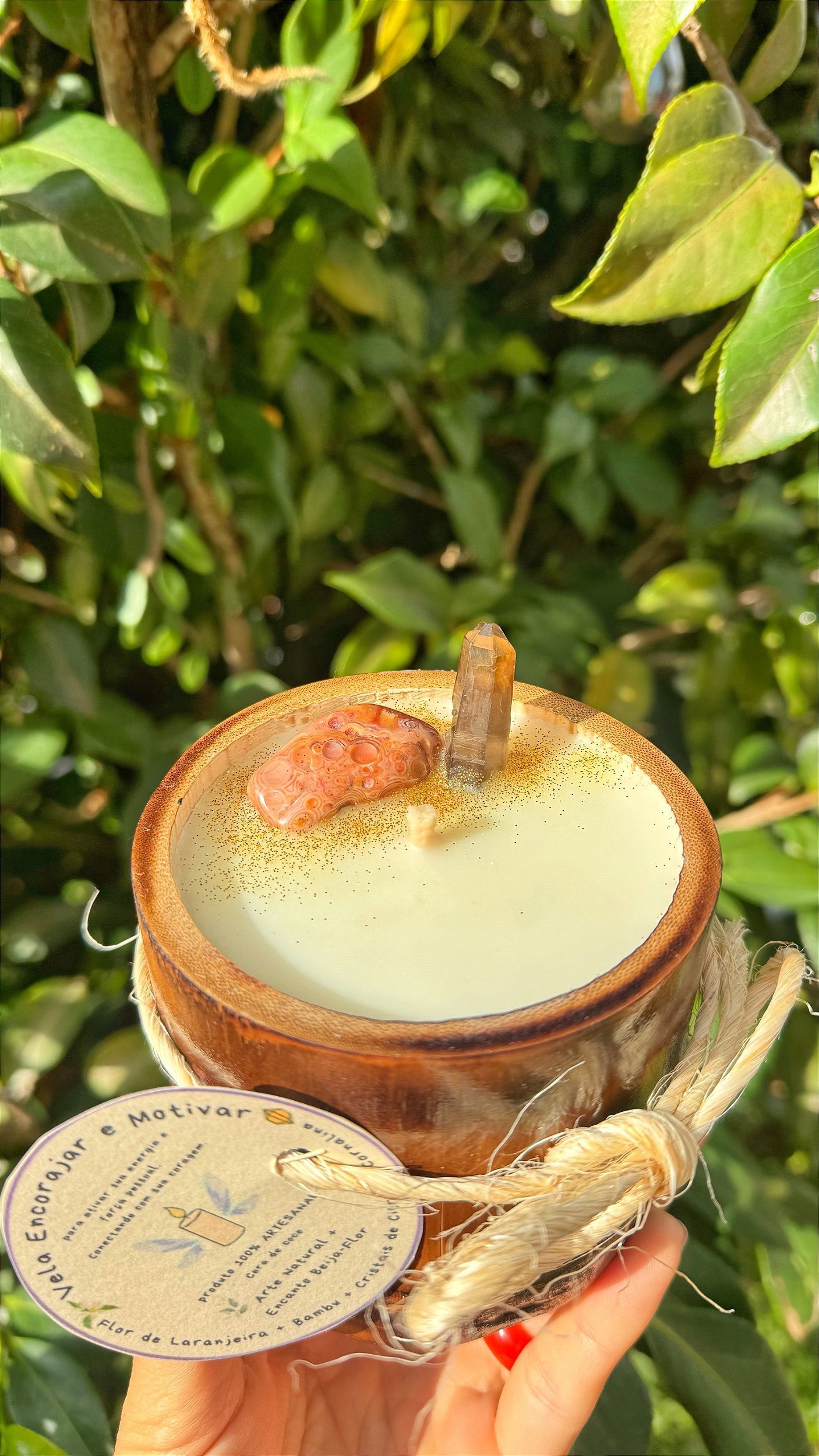Combina a fragrância vibrante de Flor de Laranjeira e Bambu, que traz leveza e inspiração para seguir em frente. Já os Cristais presentes potencializam ainda mais essa intenção: O Citrino desperta a autoconfiança e energia positiva, já a Cornalina desperta a coragem, motivação e força de ação.